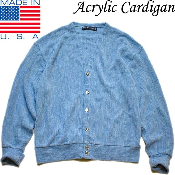 1点物◆USA製/水色アクリルカーディガン古着メンズXLレディースOKアメカジ90sストリート/スポーツMixニットセーター羽織りブランド785021