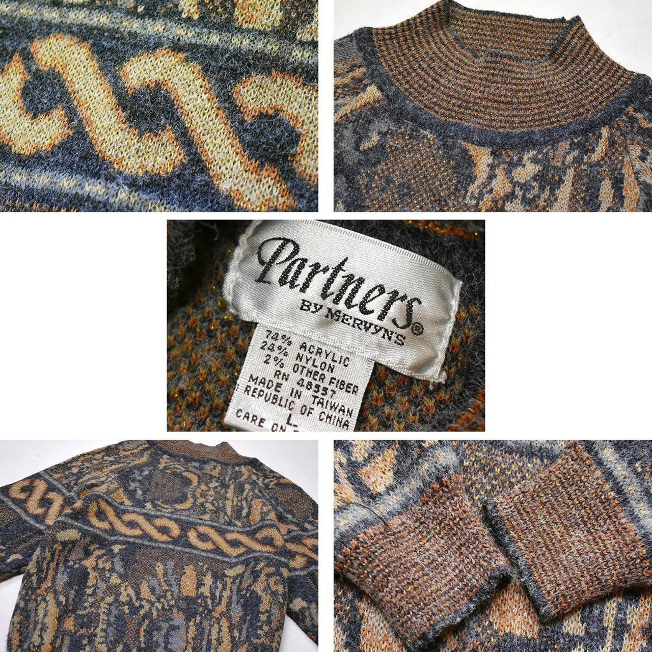 1点物◆モヘア風ラメ入り柄物ハイネックニットセーター古着メンズレディースOKアメカジ90sストリート/スポーツ/ニットセーター茶784810