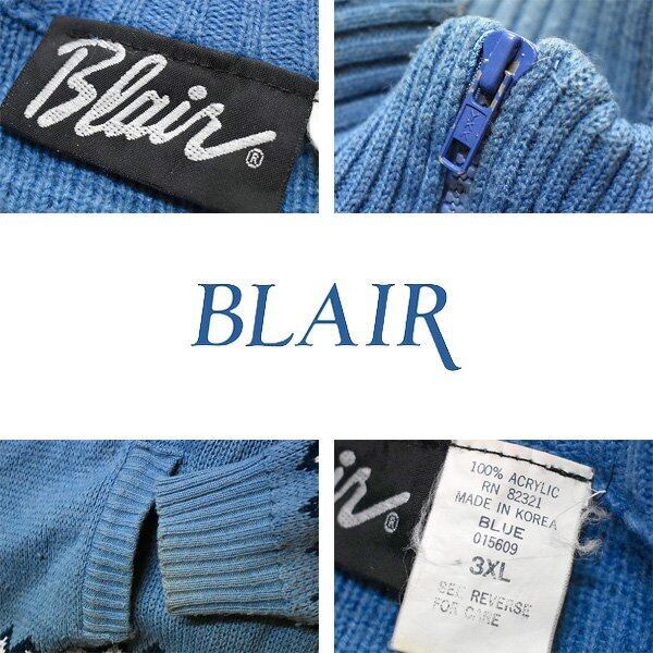 1点物◆BLAIR水色ノルディック柄ジップカーディガン古着レディース4XLメンズOKアメカジ90sストリート/スポーツ/ニットセーター/動物784809