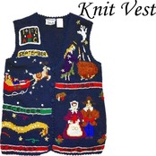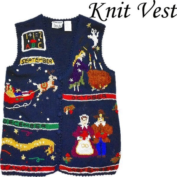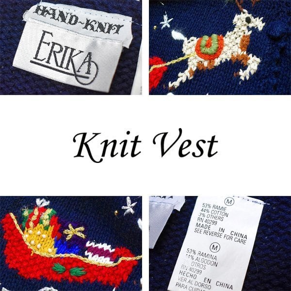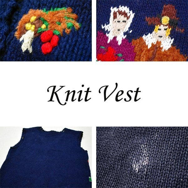 1点物◆USAブランド紺レトロ柄物ハンドニットベスト古着レディースメンズOKアメカジ90sストリート/スポーツMix手作り中古ネイビー784815