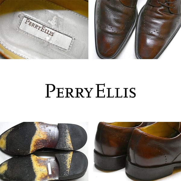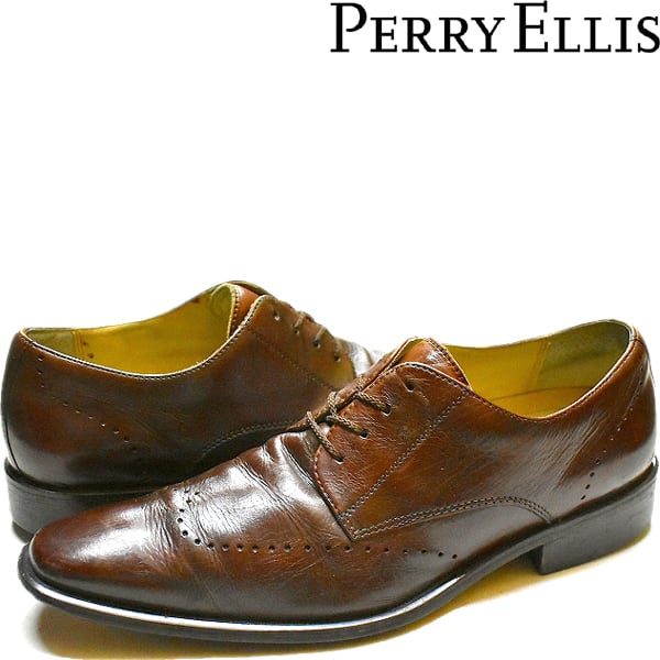 1点物◆ペリーエリス茶革靴ロングノーズレザーシューズ古着メンズ28レディースOKアメカジ90sストリートUSブランド中古Perry Ellis785074