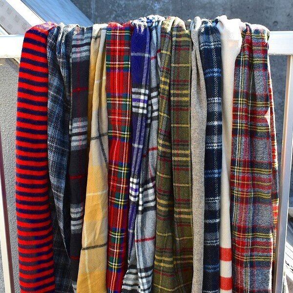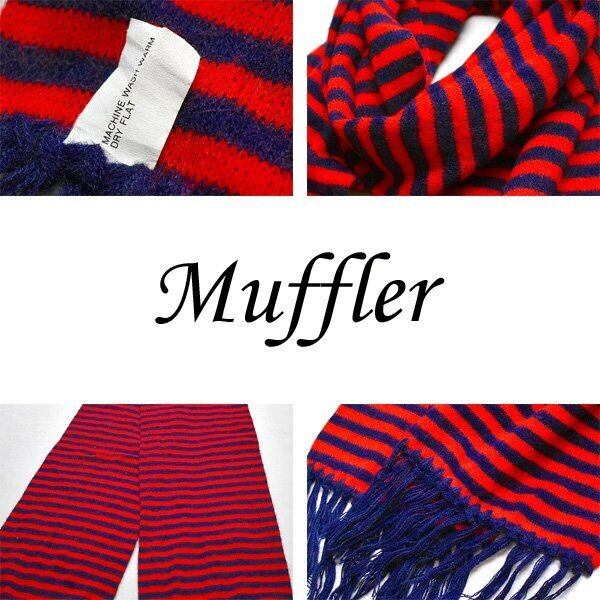 1点物◆お洒落ボーダー柄フリンジ付きマフラー古着メンズレディースOKアメカジ90sストリート/スポーツMixネックウォーマー赤紺レトロ784819