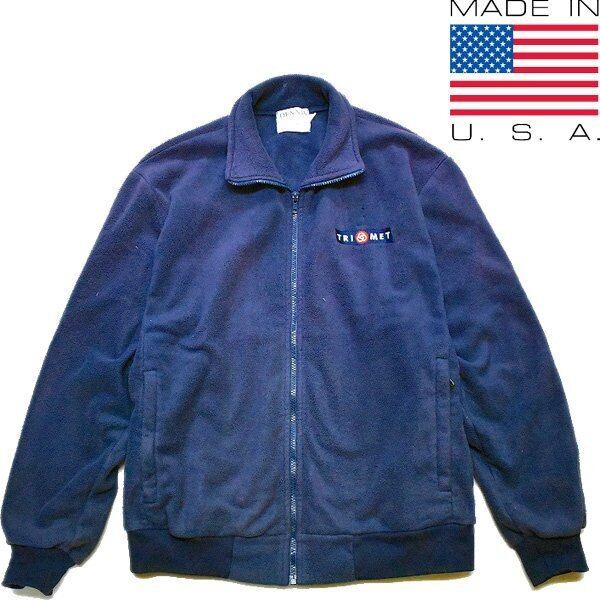 1点物◆USA製TRIMET紺ワンポイント刺繍フリースジャケット古着メンズL/XLレディースOKアメカジ90sストリート/スポーツMix紺ブルゾン784838