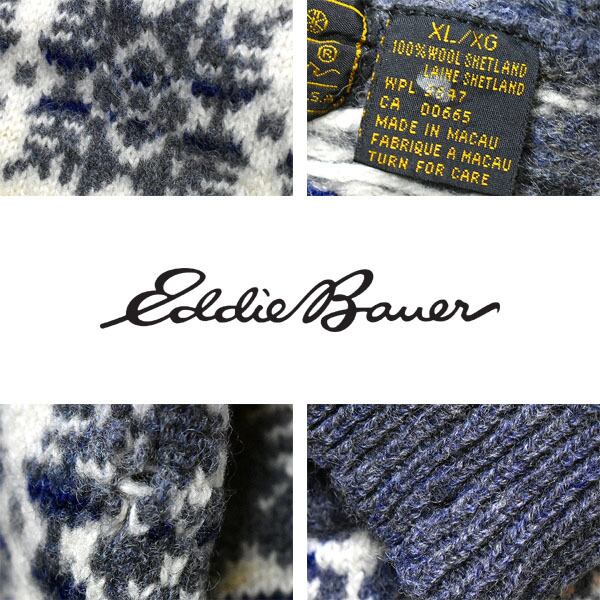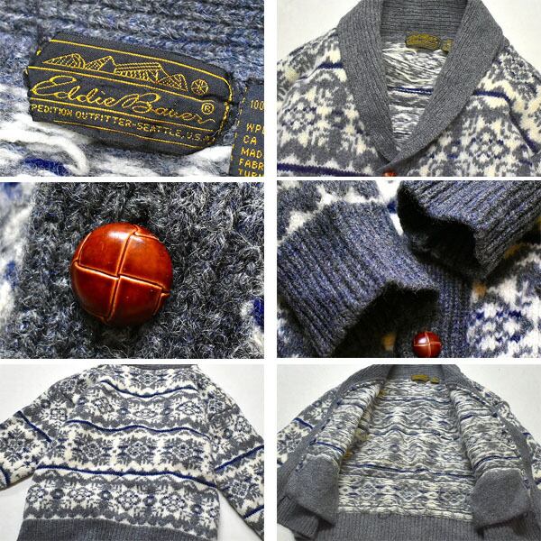 1点物◆エディーバウアー黒タグOLDカーディガン/カウチン古着メンズレディースOKアメカジ90sストリート/スポーツSMセーター雪柄559590