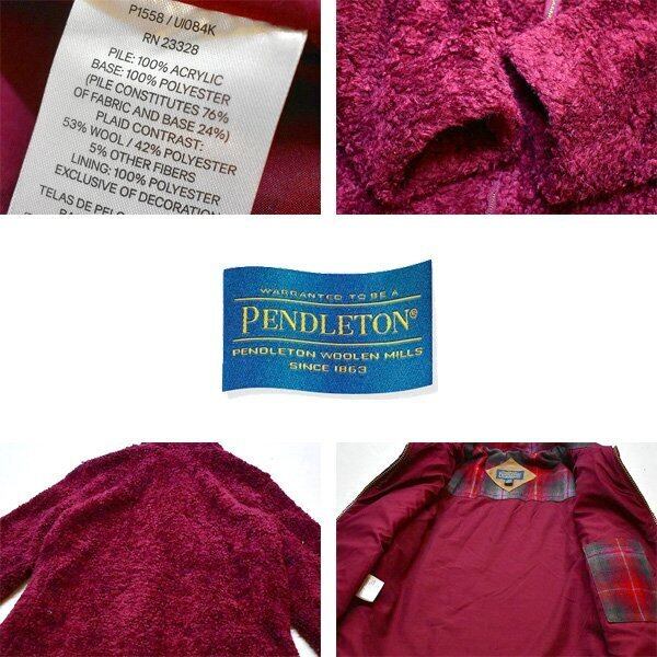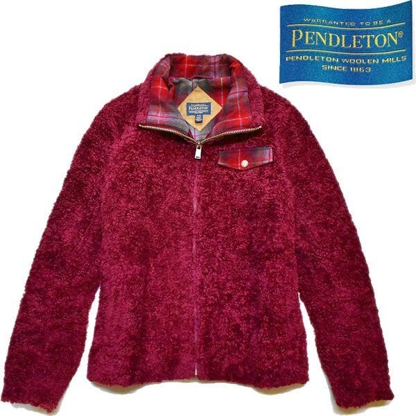 1点物◆ペンドルトンPENDLETONえんじ色ボアフリースジャケット古着レディースLメンズOKアメカジ90sストリート/スポーツMixもこもこ785113