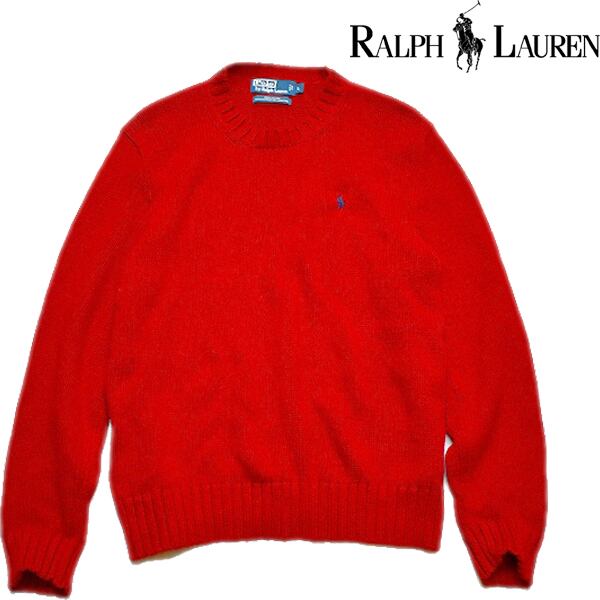 1点物◆ラルフローレンPOLO赤無地ニットセーター古着メンズL/XLレディースOKアメカジ90sストリート/スポーツMixブランドUSスウェット785150