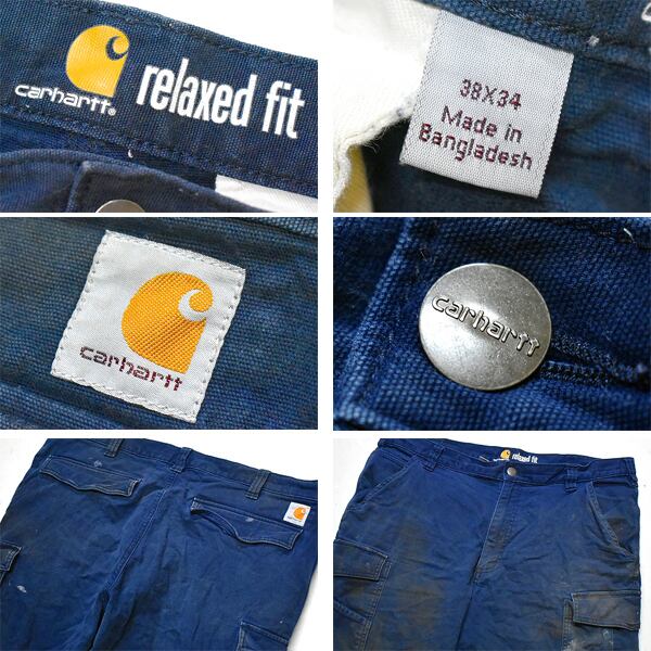 1点物◆カーハート雰囲気系ペンキアート黒カーゴパンツ古着メンズ38レディースOKアメカジ90sストリート/スポーツXLミリタリーワーク785163
