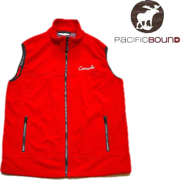 1点物◆カナダCANADAフリースベスト赤ジレ古着メンズL/XLレディースOKアメカジ90sストリートMixアウトドアジャケット中古ブランド赤785173