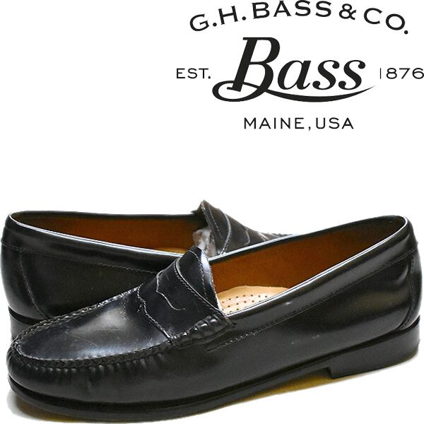1点物◆GHバスBASS黒ローファー革靴レザーシューズ古着メンズ26.5レディースOKアメカジ90sストリートMixスニーカー中古USAブランド785299