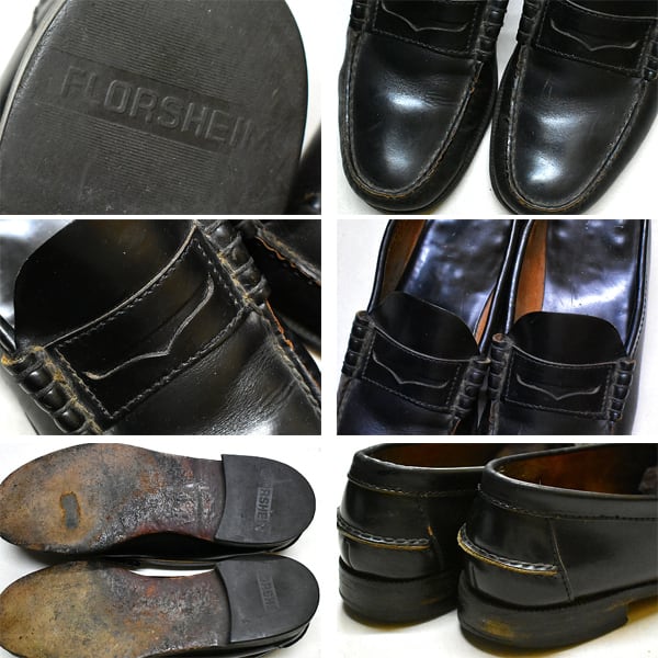 1点物◆USA製フローシャイム黒ローファー革靴レザーシューズ古着メンズ27レディースOKアメカジ90sストリートMixスニーカーFLORSHEIM785298