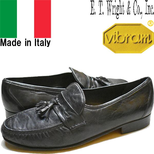 1点物◆イタリア製ETライト黒ローファー革靴レザーシューズ古着メンズ28レディースOKアメカジ90sストリートMixタッセルUSAブランド785301