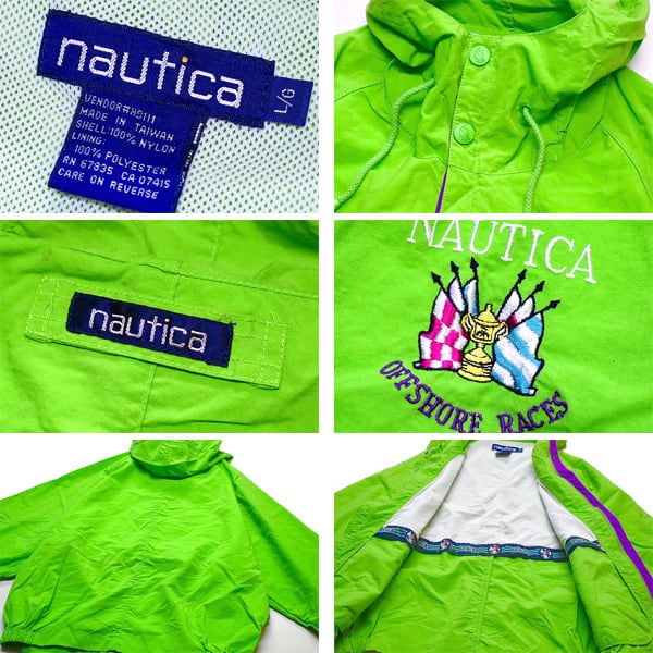 1点物◆ノーティカ90sビンテージ蛍光緑ブルゾンジャケット古着メンズL/XLレディースOKアメカジ90sストリート/スポーツパーカアウター785307