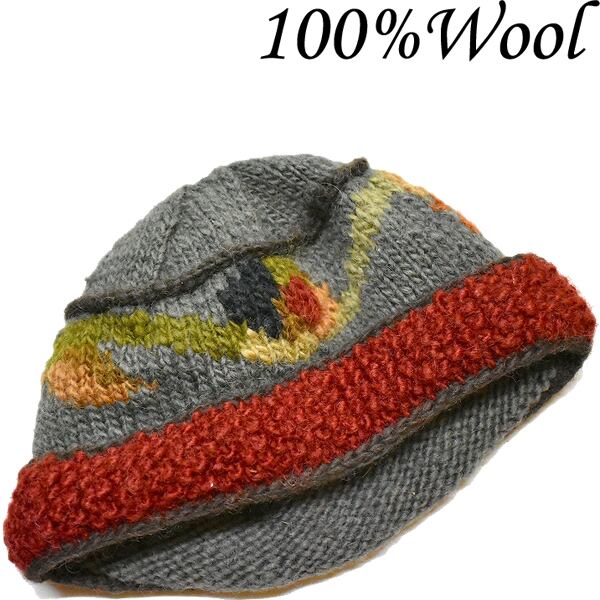 1点物◆ネパール製ウール100%柄物ニット帽ニットキャップ古着メンズレディースOKアメカジ90sストリート/スポーツMix中古ビーニー帽子785313
