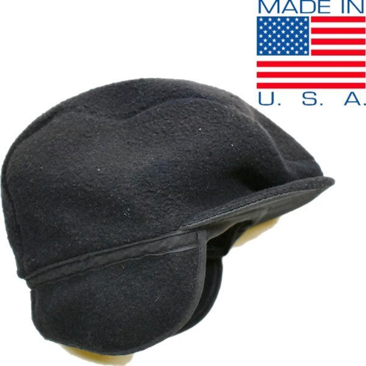 1点物◆USA製ハンチング黒無地耳当て付き帽子フリースキャップ古着メンズレディースOKアメカジ90sストリート/スポーツMixアメリカ製785366