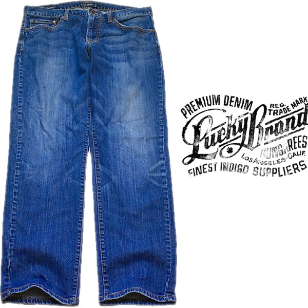 1点物◆ラッキーブランドLUCKYジーンズ/デニムパンツ古着メンズ34MLレディースOK90sストリート/スポーツ/ワイドパンツ中古チノパン青785390