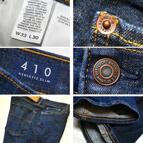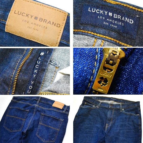 1点物◆ラッキーブランド410スリムジーンズ濃紺デニムパンツ古着メンズ33レディースOK90sストリートスポーツ/ワイドパン中古チノパン785393