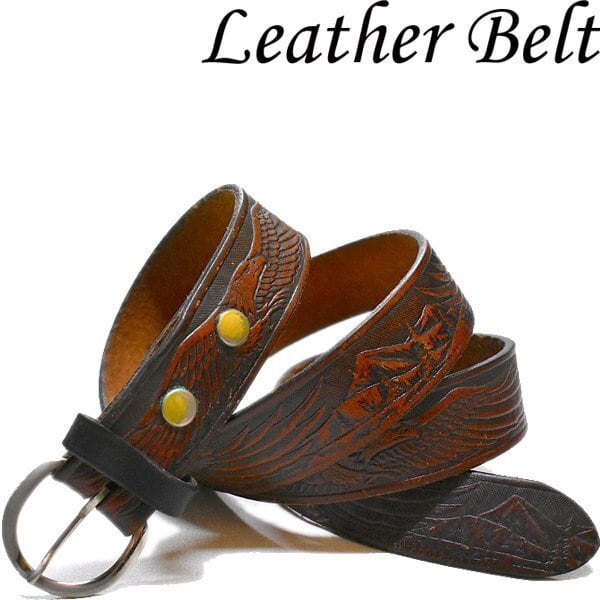 1点物◆ビンテージ型押し茶革バックル付きレザーベルト古着メンズXXXLレディースOKアメカジ90sストリート/スポーツ和柄アニマル鳥785496