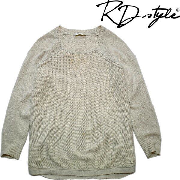 1点物◆RD STYLEベージュ無地ブランドニットセーター古着レディースXLメンズOKアメカジ90sストリート/スポーツ中古クルーネック丸首785504 | 古着屋カチカチ 東京都北区 JR王子駅前で実店舗展開中 通販もOK Tokyo Japan