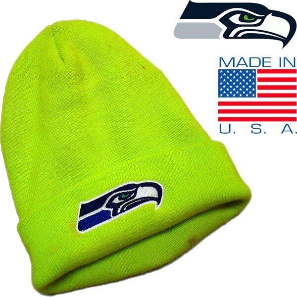 1点物◆USA製NFLシーホークス蛍光ニット帽ニットキャップ古着メンズレディースOKアメカジ90sストリート/スポーツMix中古ビーニー帽子785534