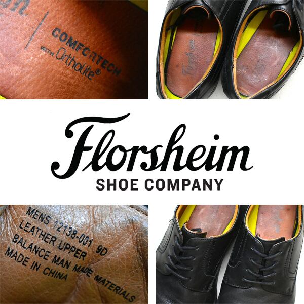 1点物◆フローシャイム革靴レザーシューズ黒ストレートチップ古着メンズ27レディースOKアメカジ90sストリートMixスニーカーFLORSHEIM785679
