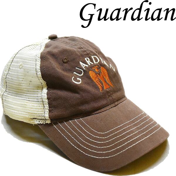 1点物◆GUARDIAN茶ロゴ刺繍メッシュキャップ古着メンズレディースOKアメカジ90sストリート/スポーツMixスナップバック帽子ハット中古785686