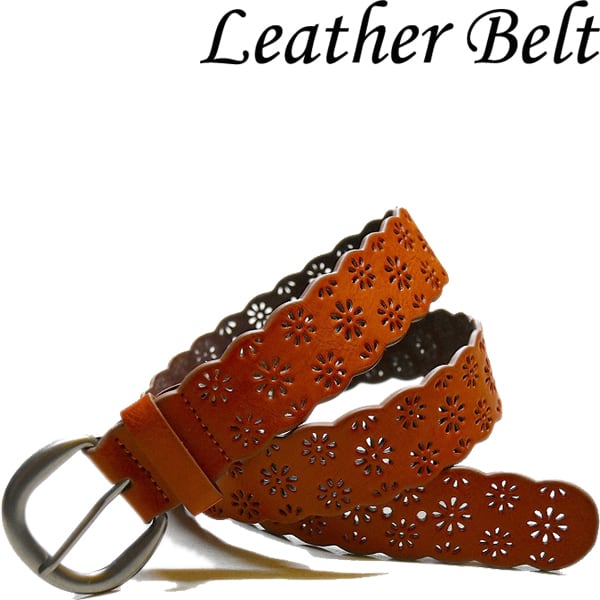 1点物◆USAブランド型抜きデザイン茶革バックル付きレザーベルト古着メンズXLレディースOKアメカジ90sストリート/スポーツMixレトロ785701