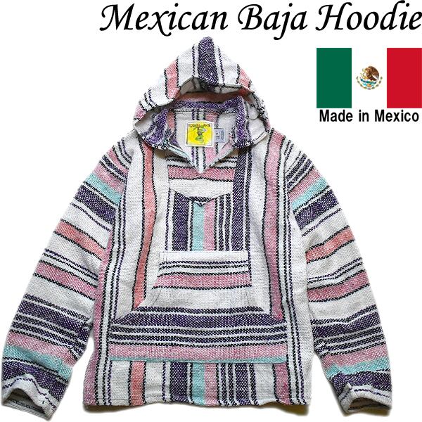 1点物◆本場メキシコ製ストライプ柄メキシカンパーカー古着メンズSMレディースOK90sストリート/スポーツ/プルオーバージャケット白黒795710