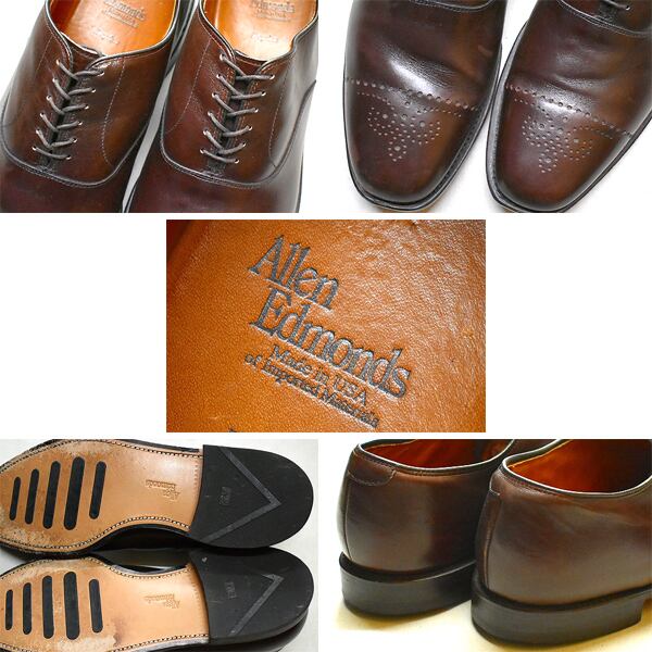 1点物◆USA製アレンエドモンズ革靴レザーシューズ茶ブローグシューズ古着メンズ30レディースOKアメカジ90sストリート中古アメリカ製785784