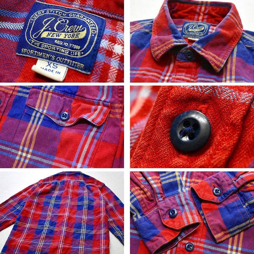 1点物◆ジェイクルーJCREWネルシャツ長袖チェックシャツ古着メンズXS/SレディースOKアメカジブランド90sストリート赤紺レトロ中古785776