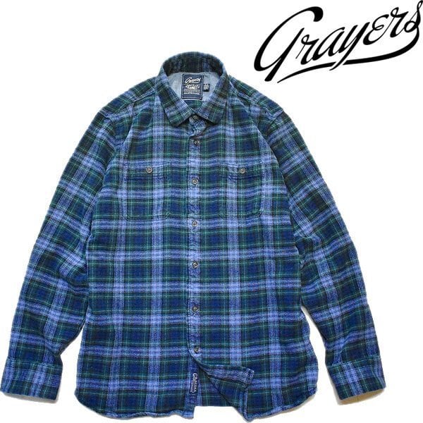 1点物◆GRAYERS紺/深緑ヘビーネルシャツ長袖チェックシャツ古着メンズL/XLレディースOKアメカジブランド90sストリート柄ビッグサイズ785769