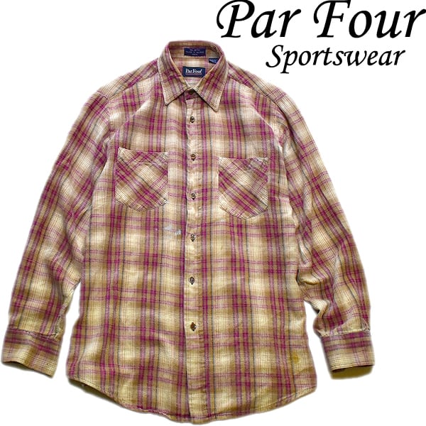 1点物◆Par Fourネルシャツ長袖オンブレチェックシャツ古着メンズMLレディースOKアメカジ90sストリート/アウトドア中古ブランド茶赤785815