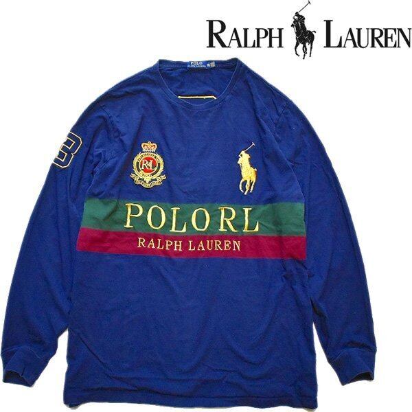 1点物◆ラルフローレンPOLO紺ビッグポニー長袖ロンTシャツ古着メンズXXLレディースOKアメカジ90sストリート/スポーツMixビッグサイズ785923