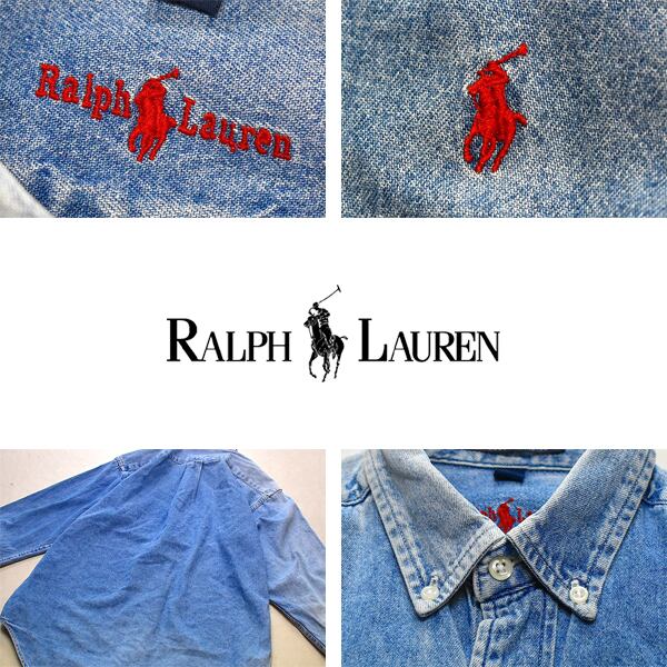 1点物◆ラルフローレンPOLO長袖デニムシャツ古着ボーイズMメンズレディースOKアメカジ90sストリート/スポーツMixポニーブランド中古7845897