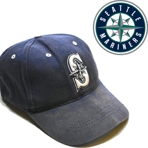 1点物◆シアトルマリナーズ紺ベースボールキャップ古着メンズレディースOK90sストリートスポーツ帽子シアトル野球MLB中古/雰囲気系557739