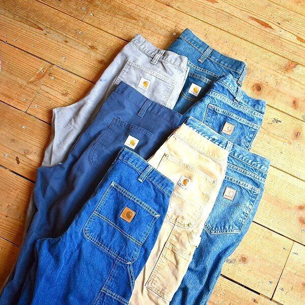 1点物◆カーハート紺ビッグサイズペインターパンツ古着メンズ36XLレディースOKアメカジ90sストリートスポーツ/ワークブランド中古557743