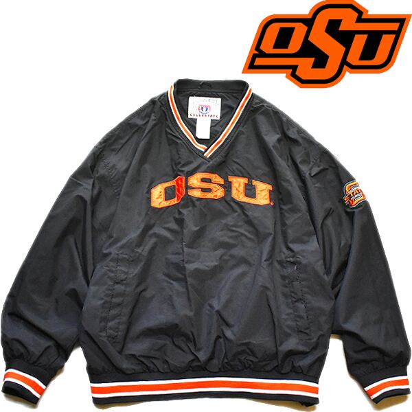 1点物◆オクラホマ州立大学プルオーバー黒ナイロンジャケット古着メンズXLレディースOKアメカジ90sストリートブランド野球スタジャン557754