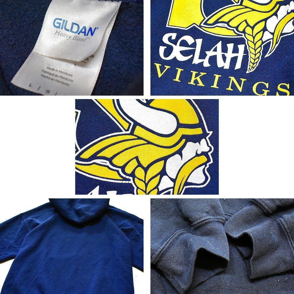 1点物◆ギルダンGILDANバイキングス紺プリントスウェットパーカー古着メンズレディースOKアメカジ90sストリート/スポーツ/トレーナー785950