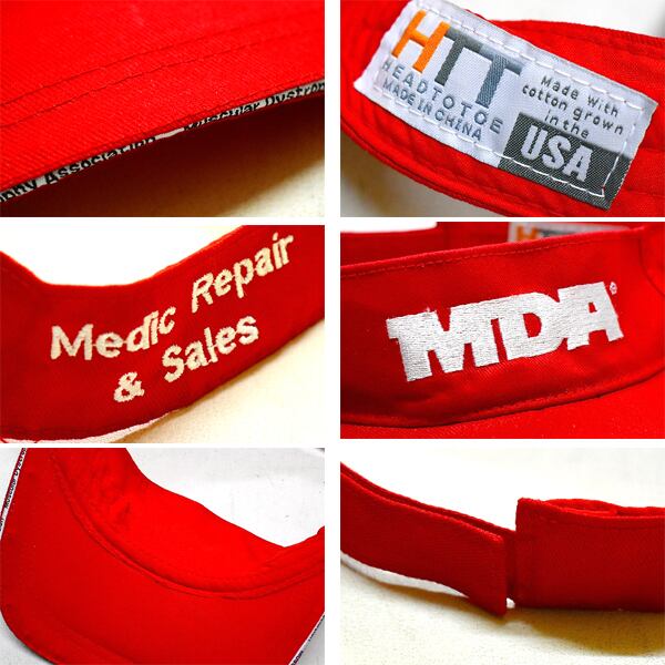 1点物◆MDAサンバイザー赤帽子キャップUSA古着メンズレディースOKアメカジ90sストリート/スポーツMixブランド中古Muscular Dystrophy557774