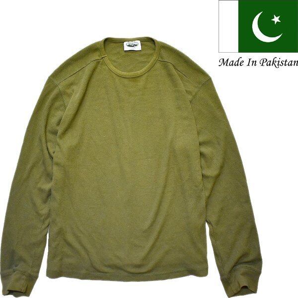 1点物◆パキスタン製オリーブ無地サーマル長袖ロンTシャツ古着メンズ3XLレディースOKアメカジ90sストリート/スポーツMixビッグサイズ557766