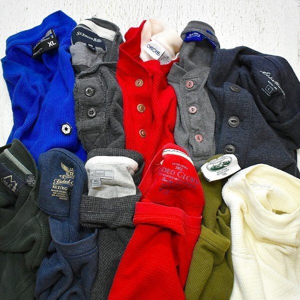 1点物◆ヘンリーネック赤無地サーマル長袖ロンTシャツ古着メンズレディースOKアメカジ90sストリート/スポーツMixビッグサイズ/レトロ557780