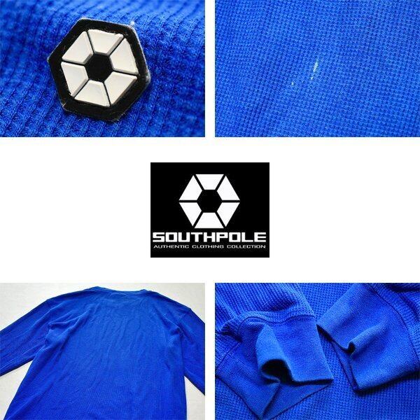 1点物◆サウスポール青サーマル長袖ロンTシャツ古着メンズレディースOKアメカジ90sストリート/スポーツMixビッグサイズ/ワンポイント557782