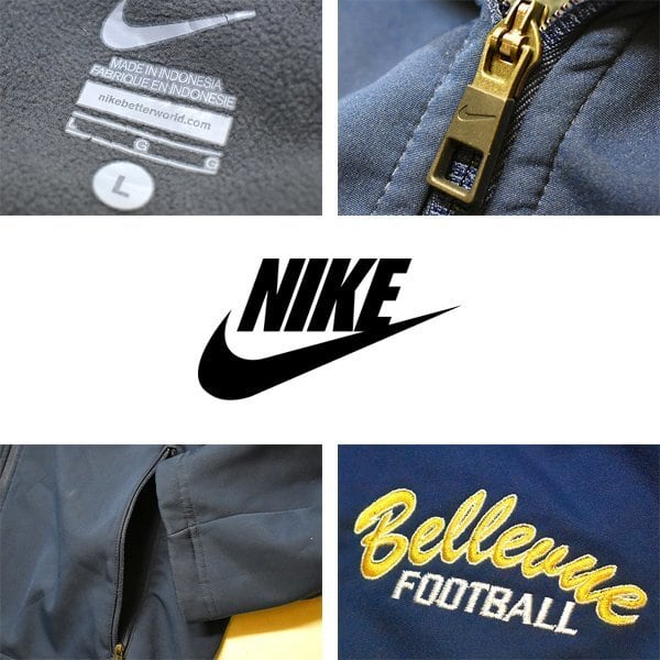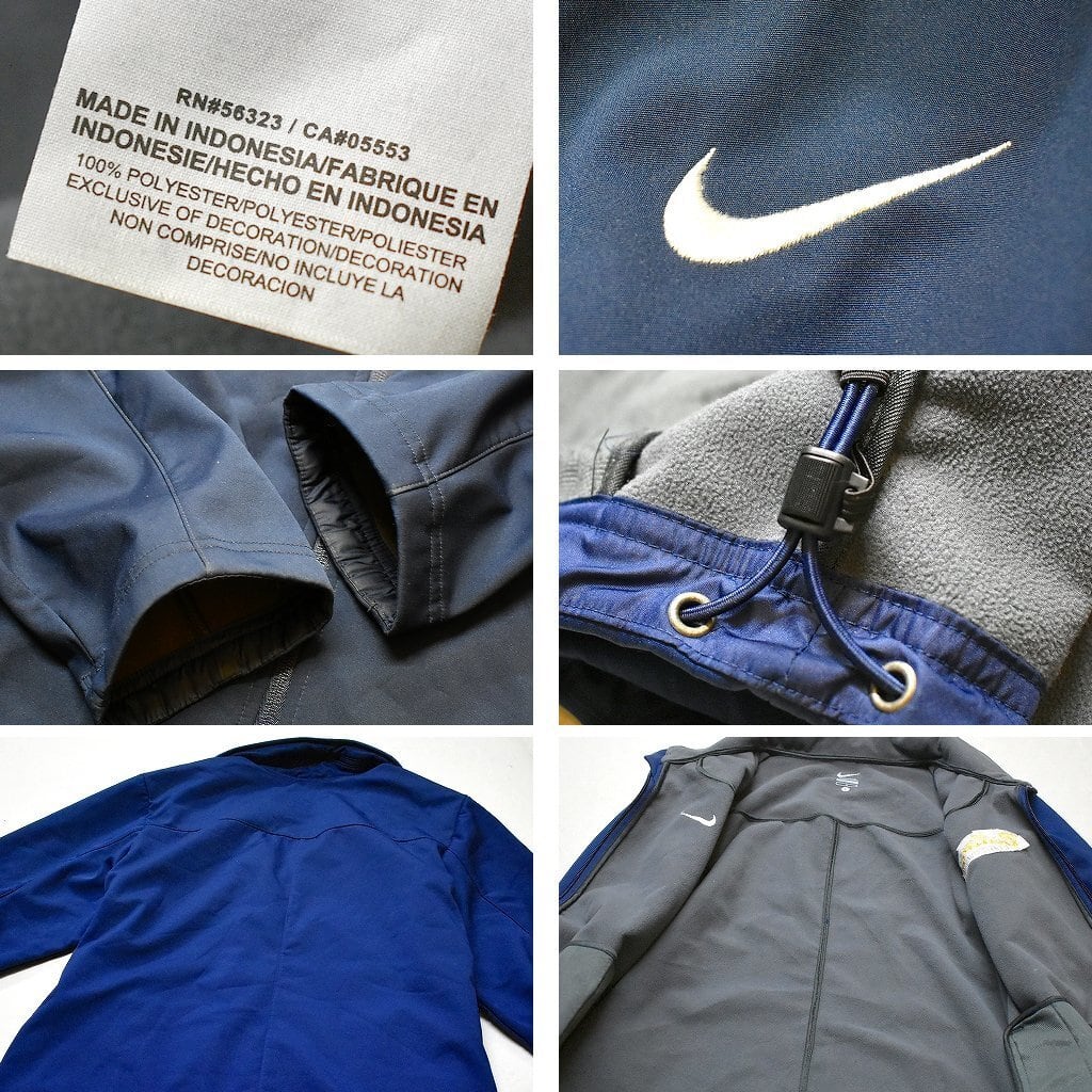 1点物◆ナイキNIKEチームロゴ紺ナイロンジャケット古着メンズL/XLレディースOKアメカジ90sストリート/スポーツ/フリースジャケット557810