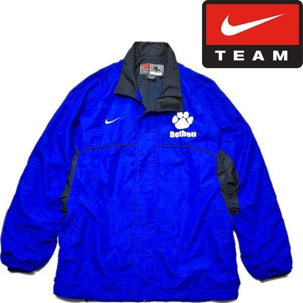 1点物◆ビンテージ00sナイキTEAMビッグサイズ青黒ナイロンジャケット古着メンズXXLレディースOKアメカジ90sストリート/スポーツ中古557812