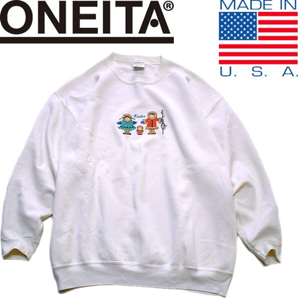 1点物◆USA製90sビンテージALASKAスウェット古着メンズXXLレディースOKアメカジ90sストリート/スポーツMixトレーナー白アメリカ製557823