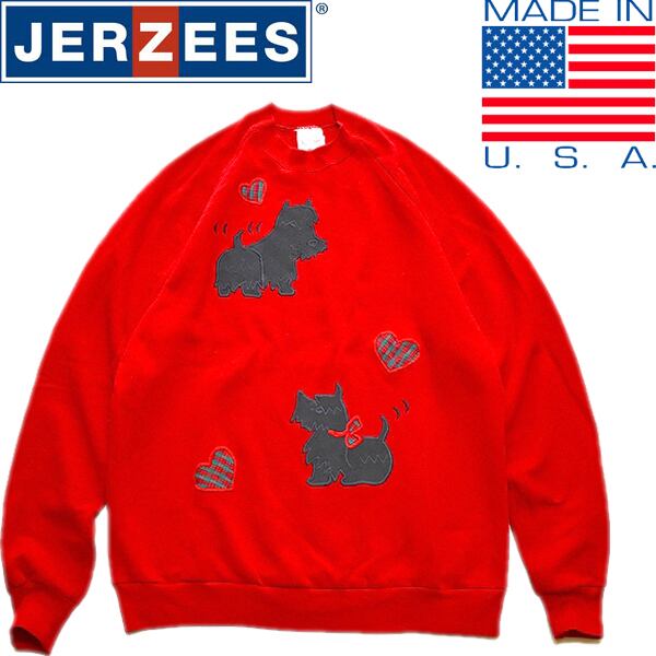 1点物◆USA製ビンテージ90s犬ワンちゃん赤スウェット古着メンズXLレディースOKアメカジ90sストリート/スポーツトレーナーアメリカ製557821