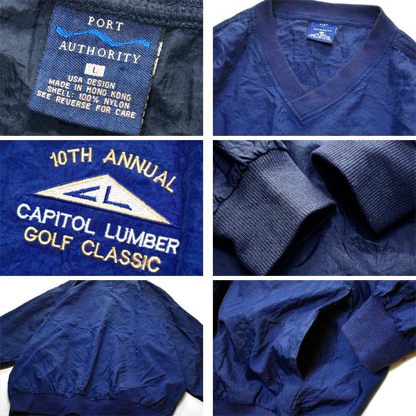 1点物◆Vネックプルオーバー紺ナイロンジャケット古着メンズL/XLレディースOKアメカジ90sストリートスポーツMixブランドスタジャン557839