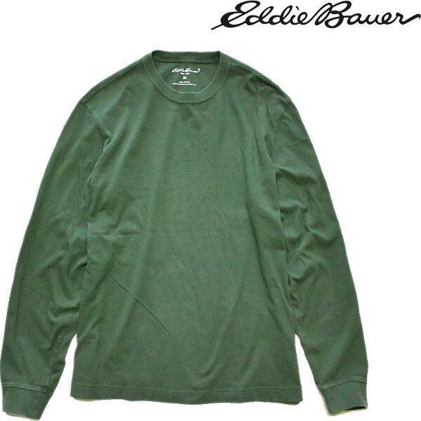 1点物◆エディーバウアー深緑無地クルーネック長袖ロンTシャツ古着メンズMLレディースOKアメカジ90sストリート/スポーツ/アウトドア557795