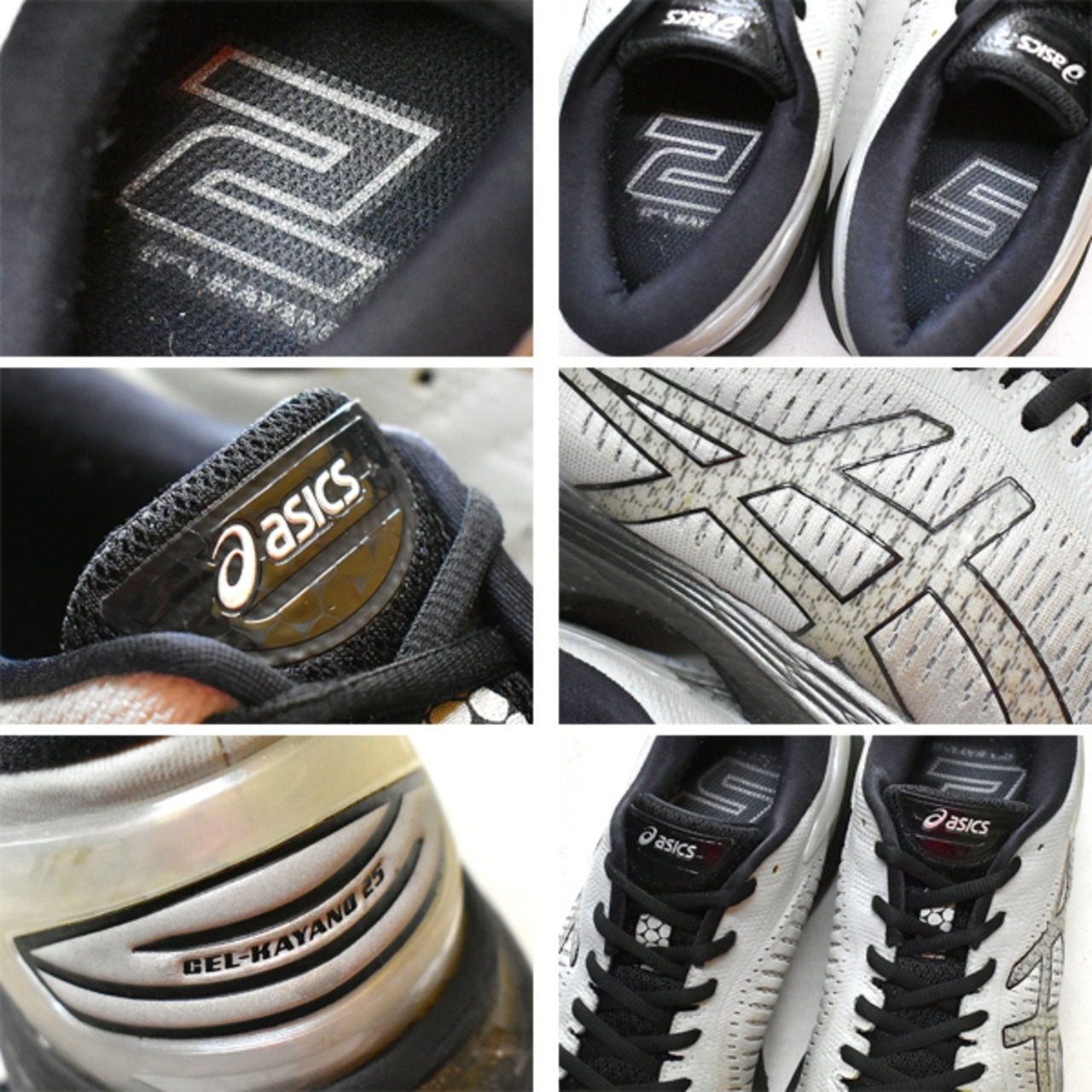 モデル名: GEL-KAYANO 25、 素材: メッシュ、 色: シルバー。