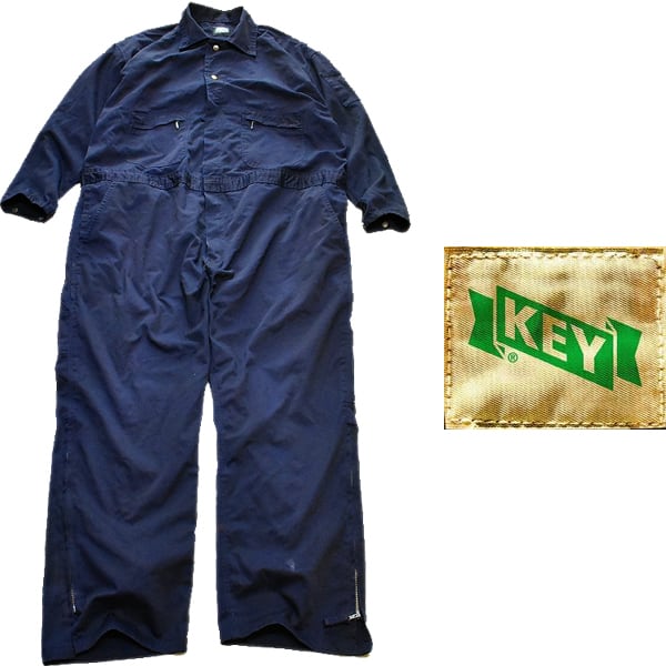 1点物◆キーKEYつなぎ作業服ツナギ紺オールインワン古着メンズXXLレディースOKアメカジ90sストリート/スポーツMixペインターパンツ557914