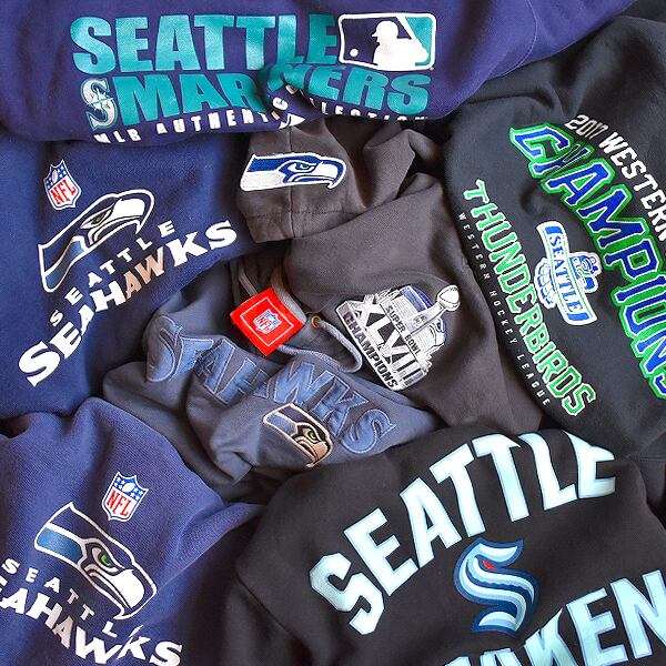 1点物◆アメフトNFLシーホークス紺スウェットパーカー古着メンズMLレディースOKアメカジブランド90sストリートスポーツ中古アメフト557969